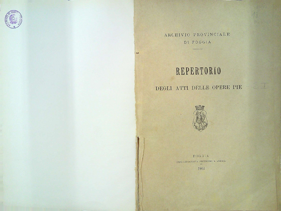 | Archivio storico del Comune di Foggia | 1631-1901 | inventario | bb. 13 | |||||||